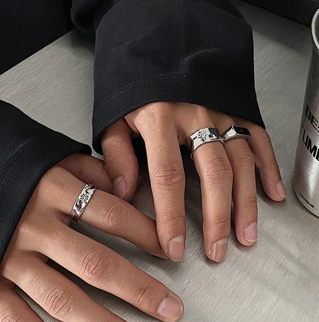 Set troch strieborných prsteňov, s motívom hviezd, pričom jeden z nich je ozdobený ónyxovým kameňom.